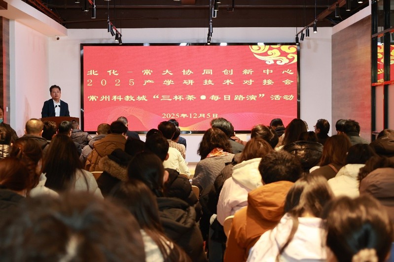 为深化校地协同创新,推动高校前沿科研成果与地方产业需求精准匹配,加速科技成果转化落地,12月5日,北化-常大协同创新中心在常州科教城成功举办2025年产学研技术对接会。本次活动由北京化工大学、常州大学联合指导,北化-常大协同创新中心、常州市科教城产科教协同创新中心共同主办,汇聚两校十余位专家学者、常州市相关部门负责人及扬子江药业集团-江苏紫龙药业、常州吾合生物医药、常州新米生物科技、金卓吉生物等数十家重点企业代表,共话产学研深度融合新路径。