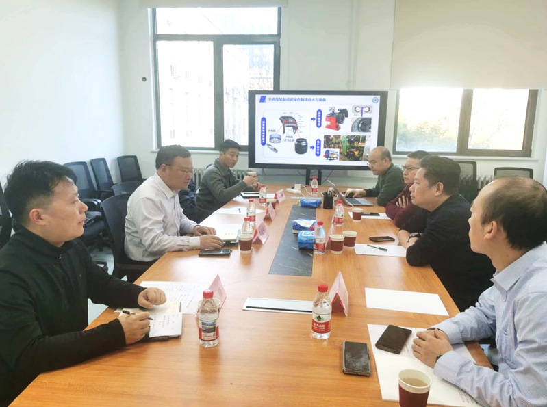 技术交流环节,学校机电工程学院焦志伟教授汇报了团队在高性能轮胎制造、层叠技术等领域的核心技术突破、研发进展及产业化应用案例;李好义副教授详细解读了聚合物熔体微分静电纺纳米纤维技术的核心原理、最新研究成果,并分析了该技术在过滤材料、生物医用等领域的应用前景与发展潜力。
